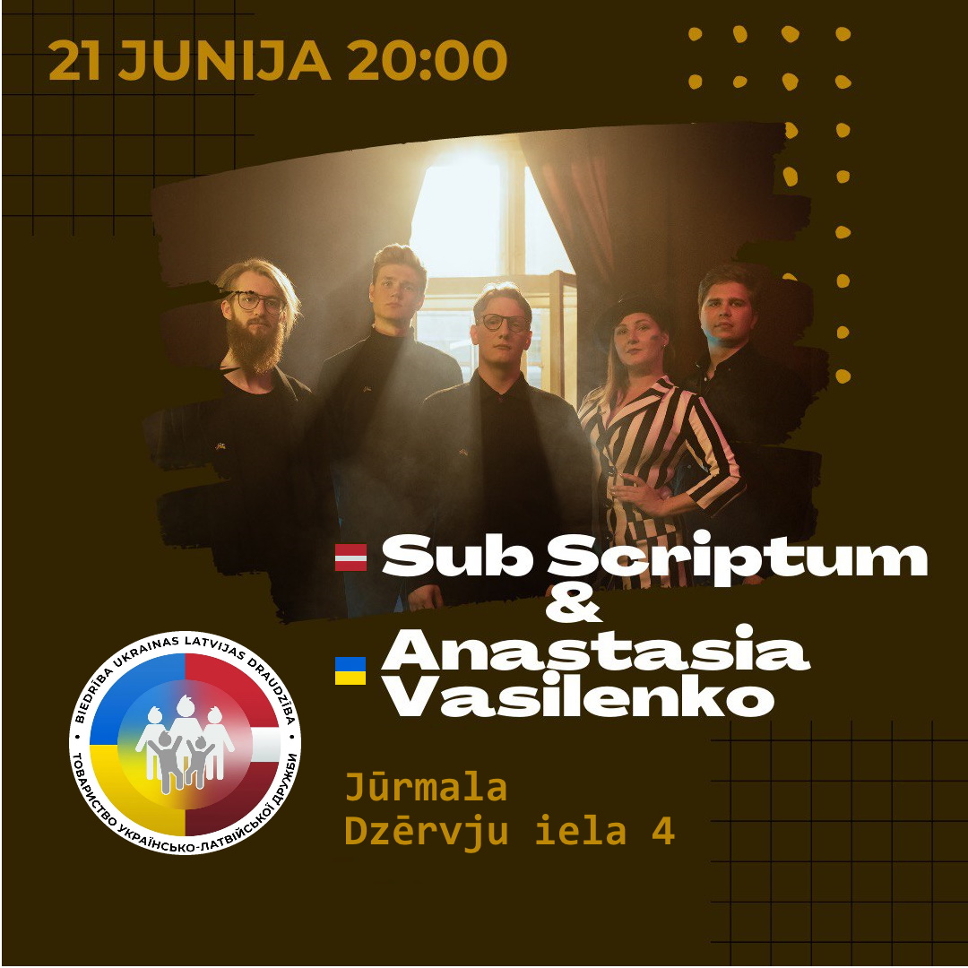 Гурт Sub Scriptum & Анастасія Василенко. Концерт відбудеться за підтримки Товариство Українсько-Латвійської дружби. Вхід 25 evro, всі зібрані кошти підуть Постраждалим від вибуху Каховської ГЕС